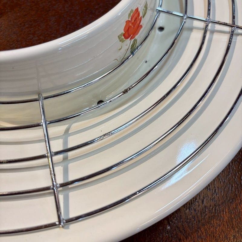 ♥ 当時物 3点セット き マルエス ホーロー 天ぷら鍋&エナディッシュ2点 昭和レトロ 薔薇 花柄 琺瑯 バット 皿 両手鍋 ネオエナ ヴィンテージ まとめ売り CA 1129 4
