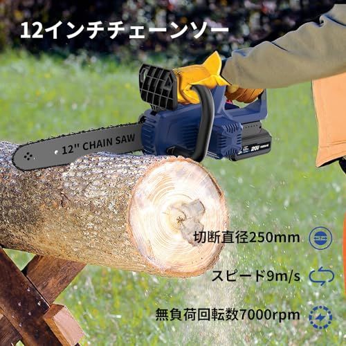 NANWEI チェーンソー充電式 12インチ ダイヤル調節自動給油式 ブレーキ機能付きバッフル 工具レス調整 電動チェーンソー ブラシレスモーター 電動のこぎり 軽量 伐採 枝払い 枝打ち 薪作り 庭木の剪定 電動ノコギリ マキタ18 47707 e 3