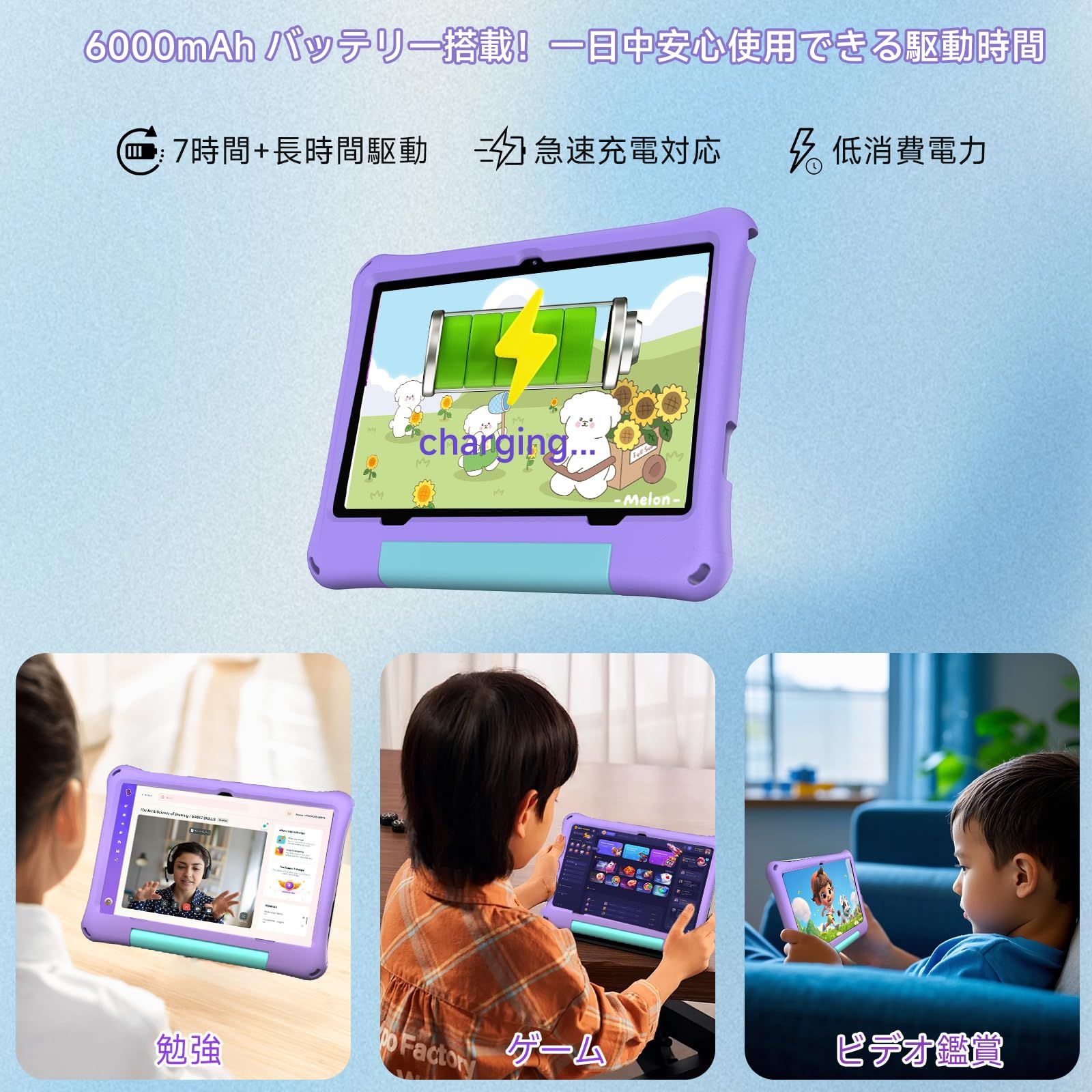 【2025新定番】COLORROOM Kids10 キッズタブレット キッズスペース&YouTube Kids 数千点のキッズコンテンツが使い放題 落下防止 利用時間制限 軽量EVAケース付き 10インチ wi-fiモデル Android16 24GB+64GB+1TB 拡張可能 2.0Ghz 6000mAh 対象年齢3歳から 誕生日プレゼント クリスマス 卒業 (パープル)