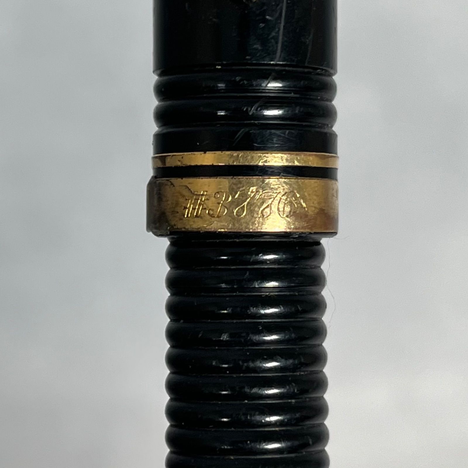 ブラックカラーのリブ(ギャザー)軸で、ペン先には14K刻印が確認できます。