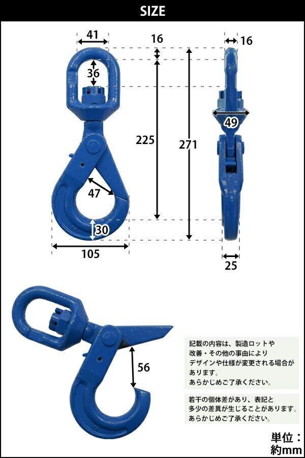 スイベルフック 使用荷重約4 t 約4 0 約4000 kg G 100 鍛造 ハイグレードモデル フック スイベル 回転 吊り具 ロッキングフック ロックフック セルフロッキングフック ラッチロックフック アイタイプ 重量フック s hook 4 b