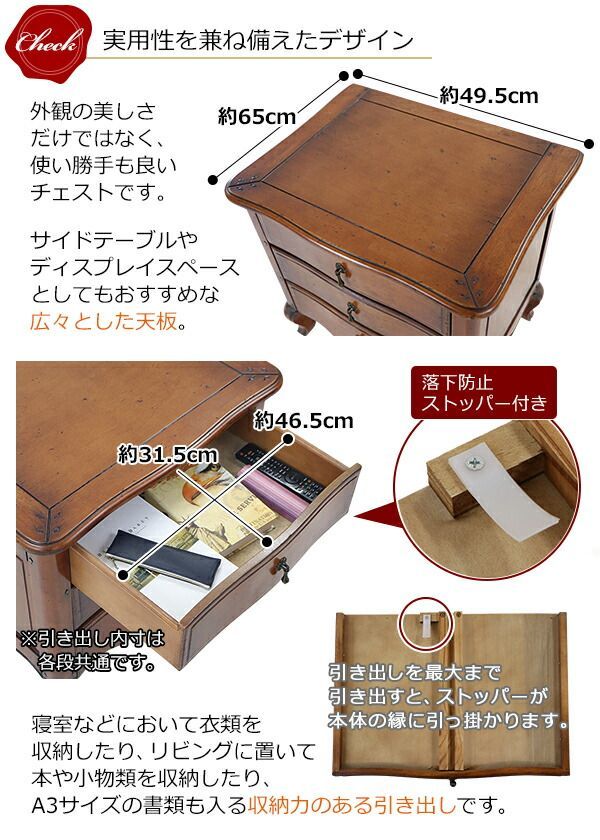 アンティーク調3段チェスト