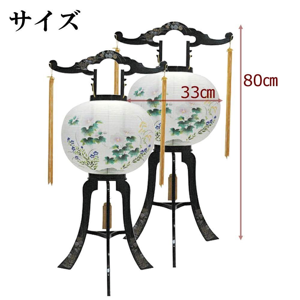 お仏壇のはせがわ 盆提灯 2個セット 11号 (回転 菊蒔絵) 岐阜提灯 盆ちょうちん 回転提灯/新盆 初盆 お盆 (高さ80cm × 幅33cm × 奥行33cm)