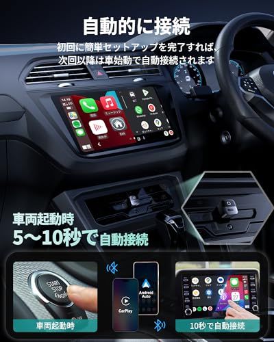 【接続カンタン?自動接続】面倒な接続は一切必要ありません。お使いの車両が有線CarPlay/Android Autoをサポートしていれば、挿すだけで接続が完了します。スマートフォンとBluetoothで接続するだけの簡単設定で、初回設定さえすれば以降はスマートフォンがポケットの中に入っていても10秒ぐらいで自動的にCarPlay/Android Autoがディスプレイオーディオに表示されます。毎回乗車の度にセッティングは不要です。※2台以上のスマ