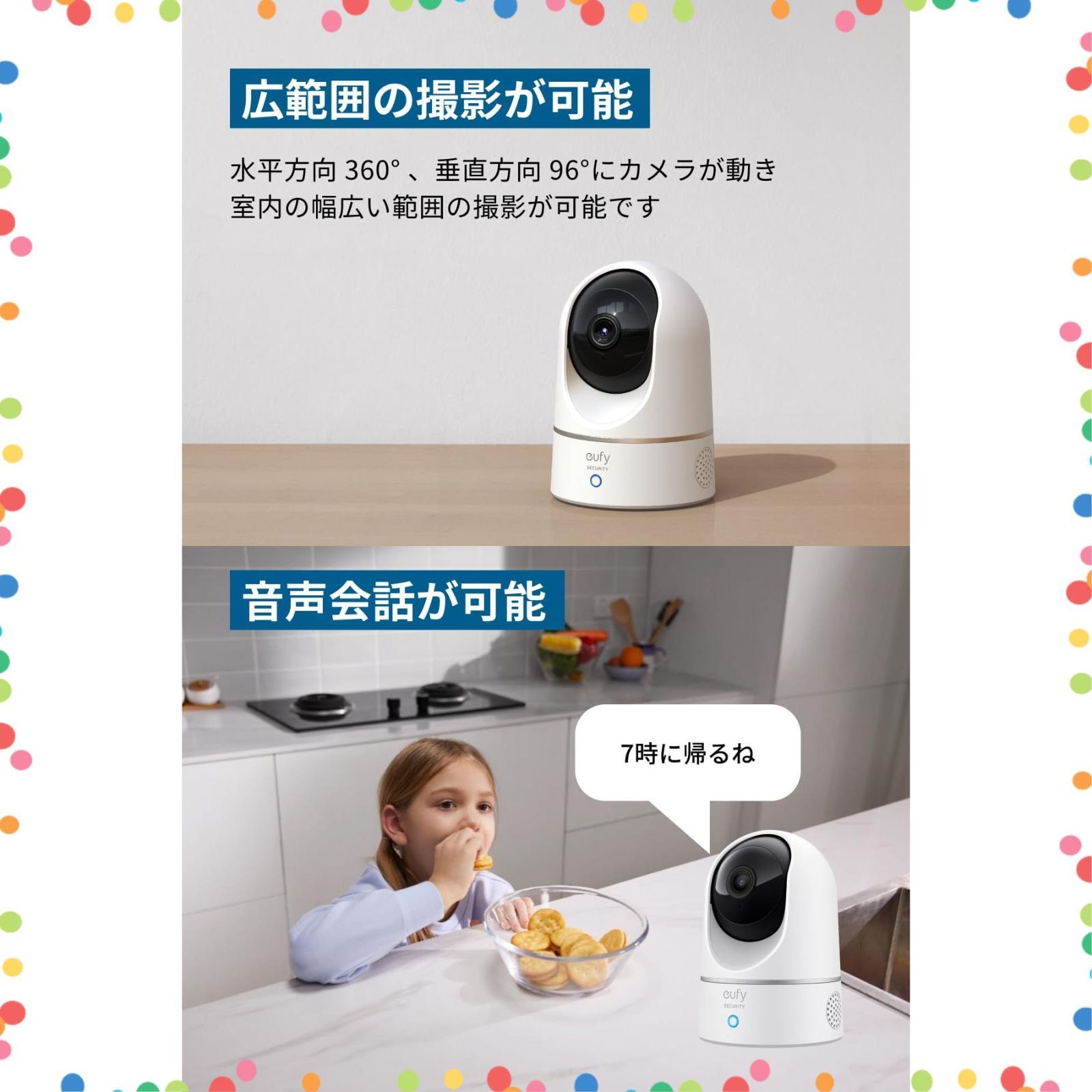 Anker Eufy IndoorCam 2K Pan & Tilt(見守りカメラ)【屋内カメラ/ネットワークカメラ/ベビーモニター/ペット見守り/音声アシスタント/ナイトビジョン/モーショントラッキング/全周囲監視】