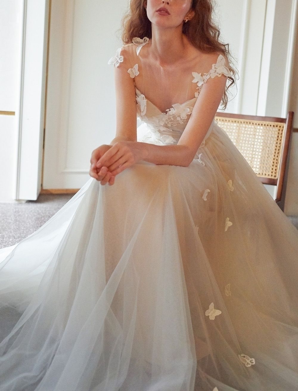 レース ウェディングドレス 結婚式 シフォン バタフライ 韓国