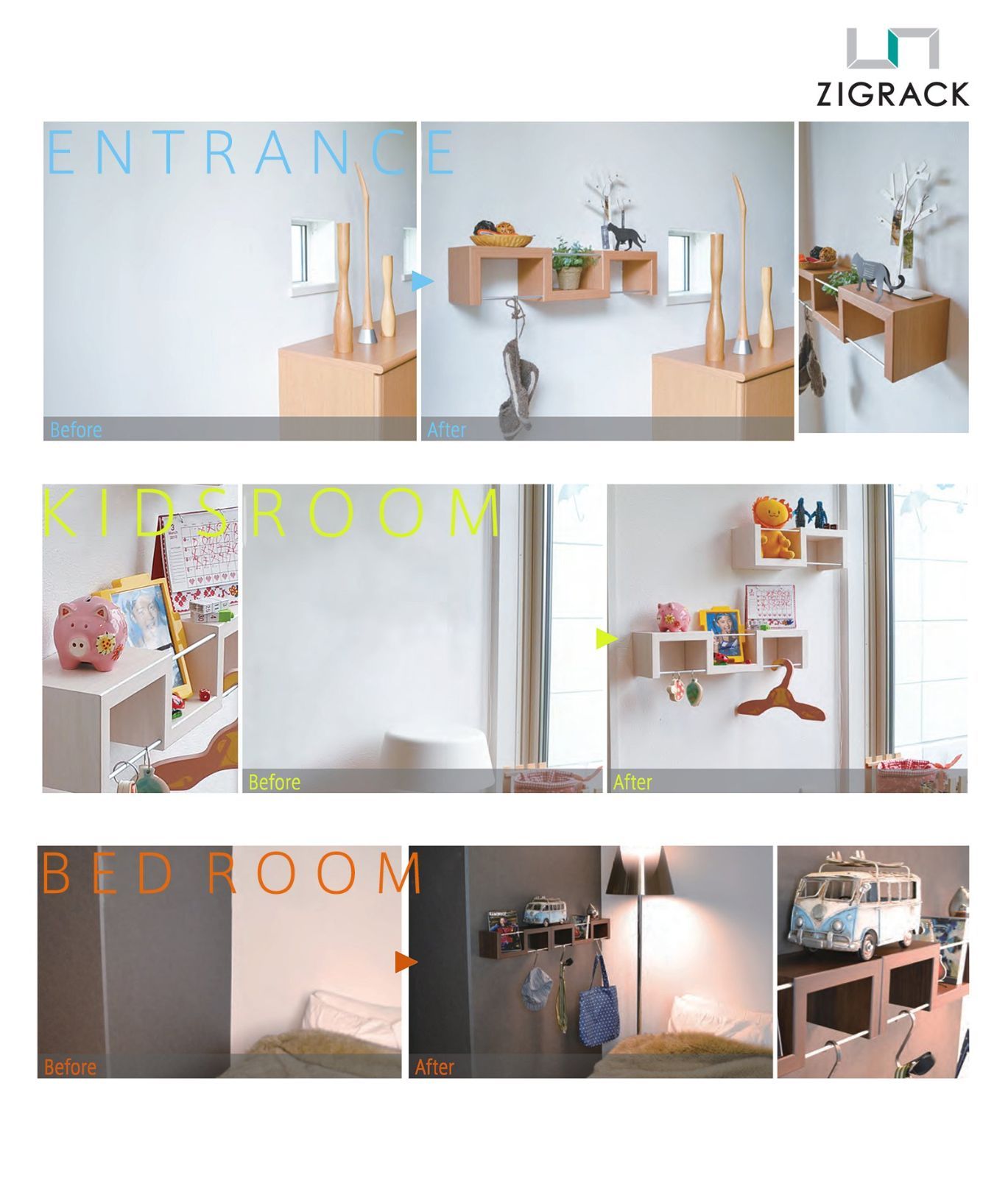 幅57 cm 3連 石膏ボード対応シェルフ ウォールラック DIY ナチュラル 本棚 簡単棚 トイレ ZIGRACK おしゃれシェルフ 壁掛け棚 飾り収納 福井金属工芸 安全耐荷重10 kg ZIG 2 B