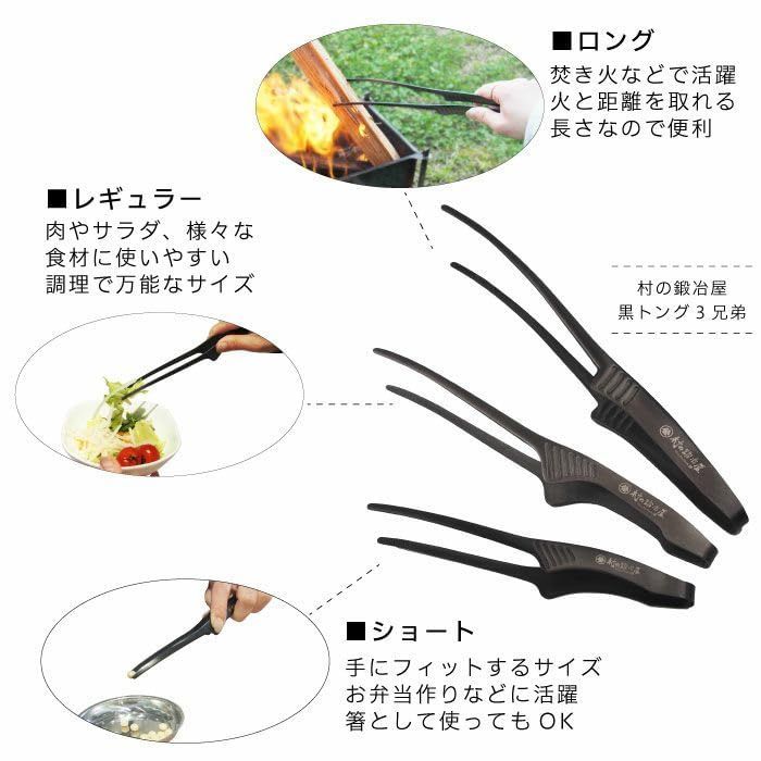 ステンレス 黒トング 3点セット ショート レギュラー ロング 燕三条製 Todai 村の鍛冶屋 各 キャンプ
