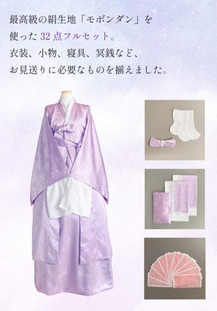 こちらのシルク最高級寿衣セットモボンダンは32点フルセットです。