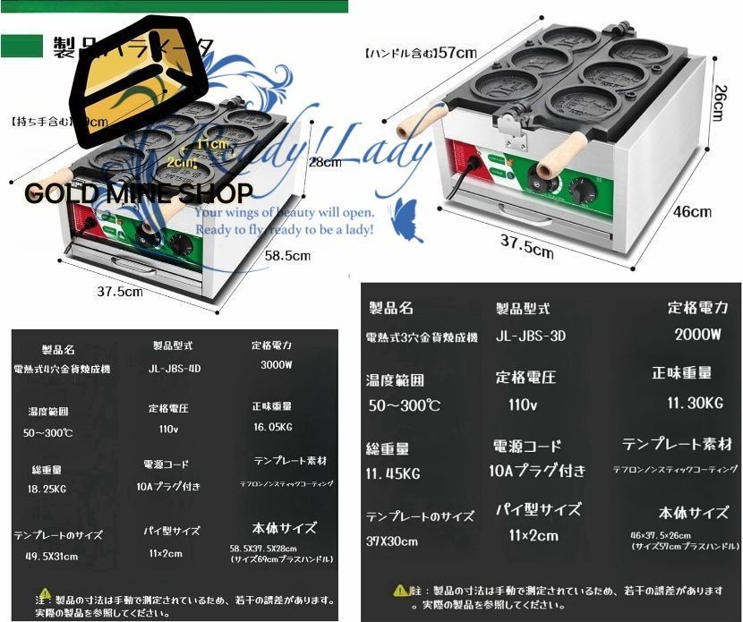 業務用ワッフルメーカー 3000ワットエッグバブルパフアイロン 50 300℃調整 180°回転 ノンスティックテフロンコーティング付きステンレススチールベーカー ガス式 電熱式 3 PCS