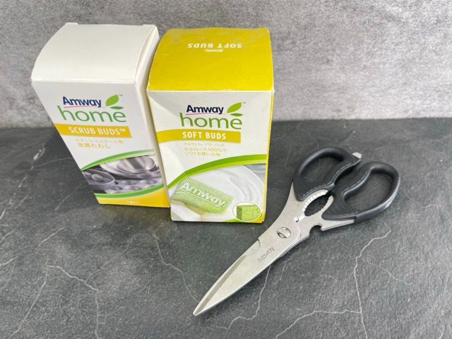 キッチンバサミ、金たわしx3(箱入り)、台所用スポンジx2(箱入り)が付属しております。