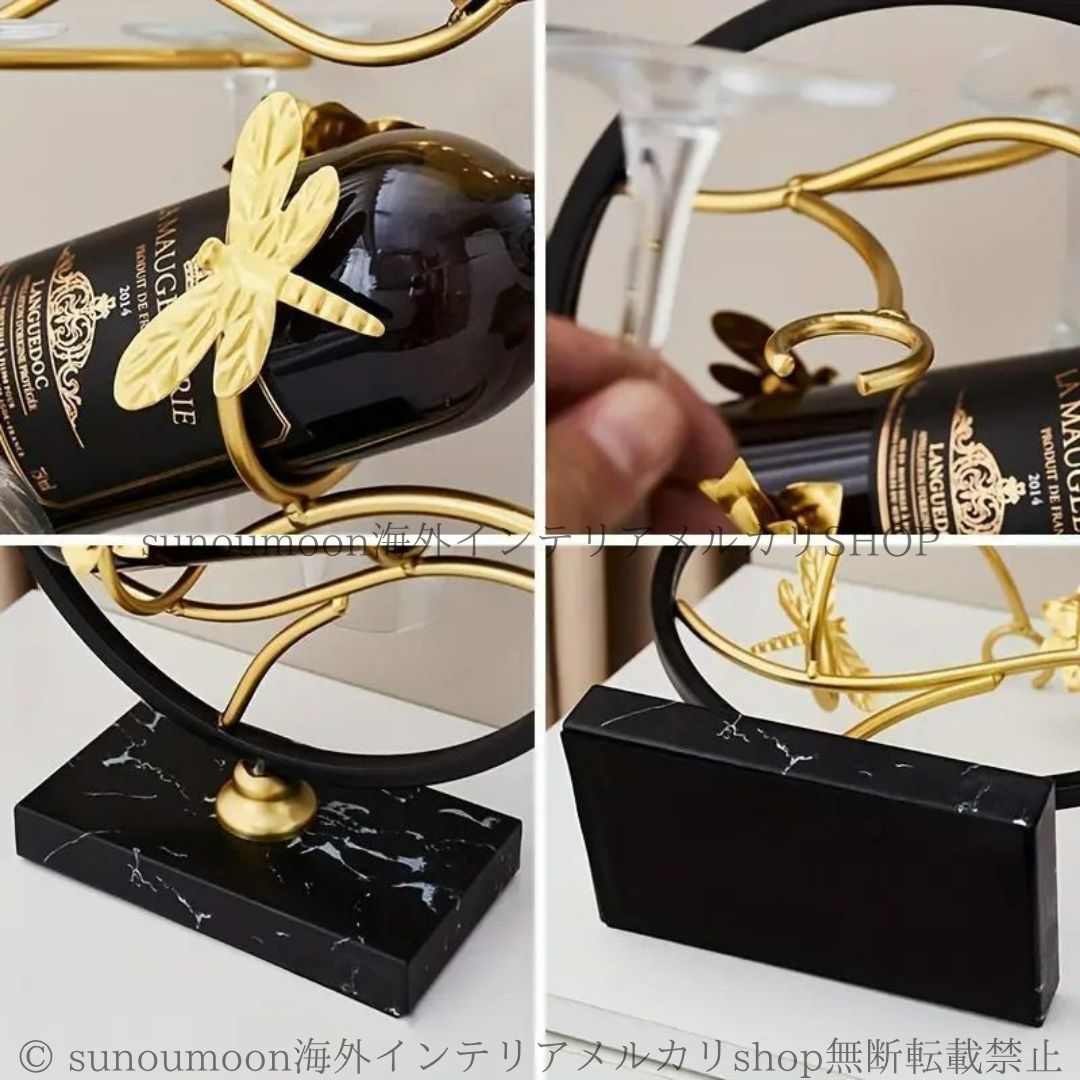 ボトル収納 ワイン ワインラック グラスホルダー エレガント メタル キッチンバー グラス モダン キッチン バー ゴールド ブラック 4 7