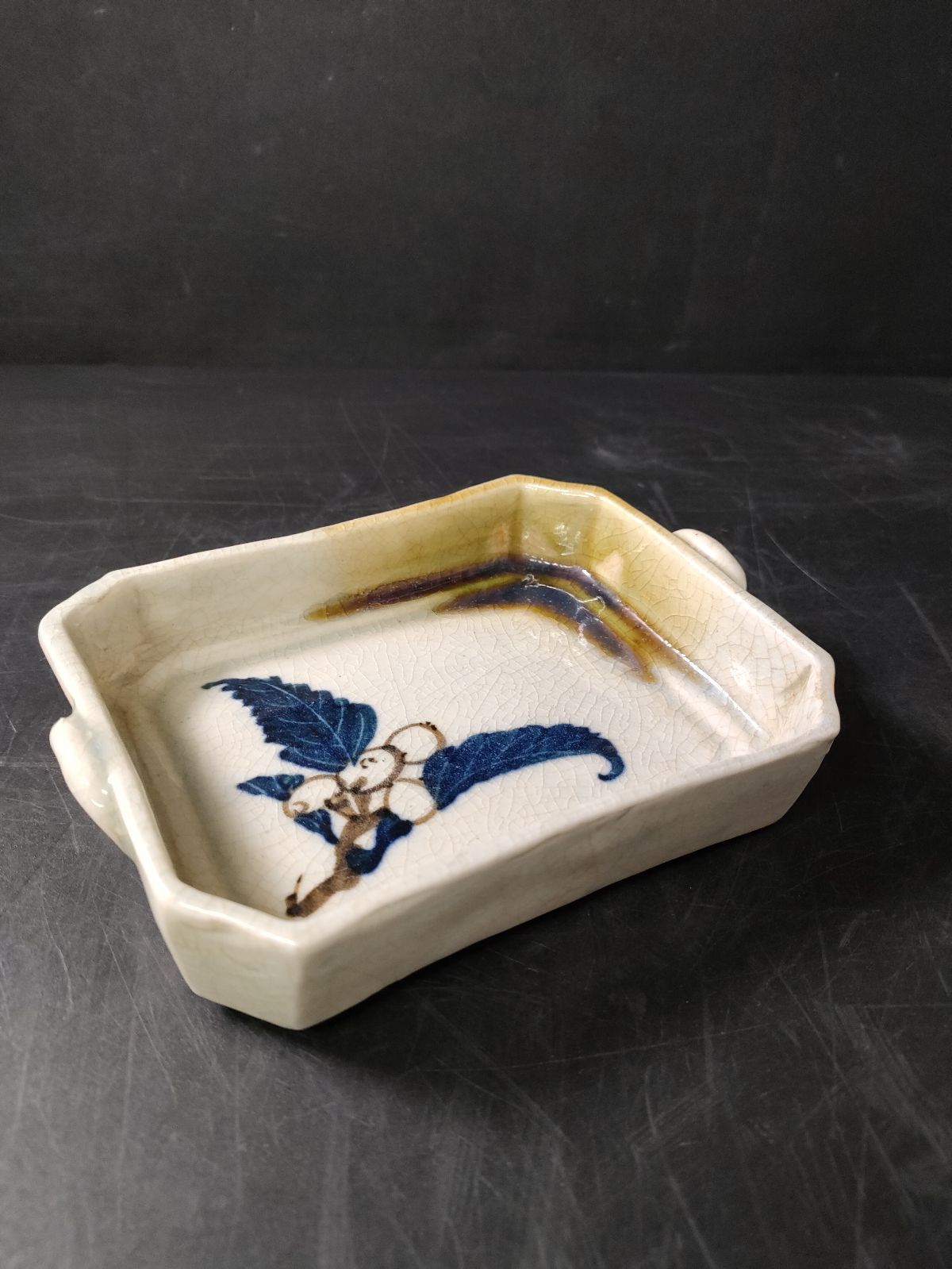 F 5 03 織部釉枇杷模様角刺身皿39客 小皿 小鉢 向付 角皿 長皿 刺身皿 銘々皿 懐石料理 懐石道具