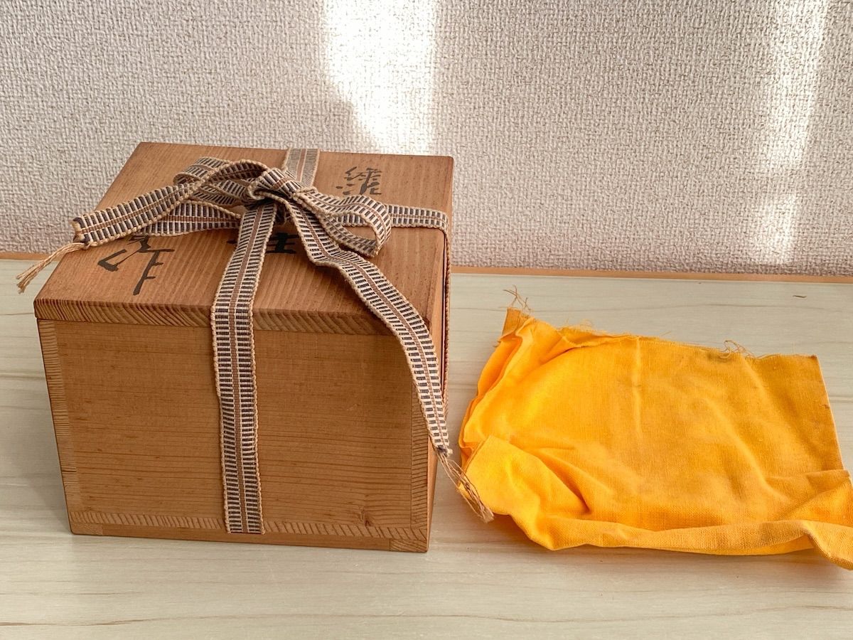 未使用の美品です。共布と共箱が付属しますが、保管時の汚れがある場合があります。また、注ぎ口の樹脂が劣化しています。