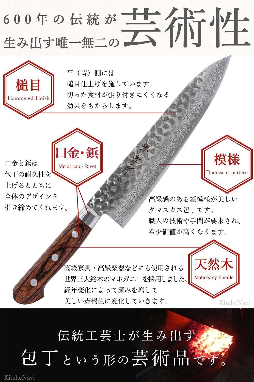 ✅【堺孝行ブランド】堺打刃物を代表する「堺孝行」ブランドの包丁で、美しい槌目ダマスカス模様に仕上げられた逸品です。ワンランク上の包丁を使いたい方にオススメです。