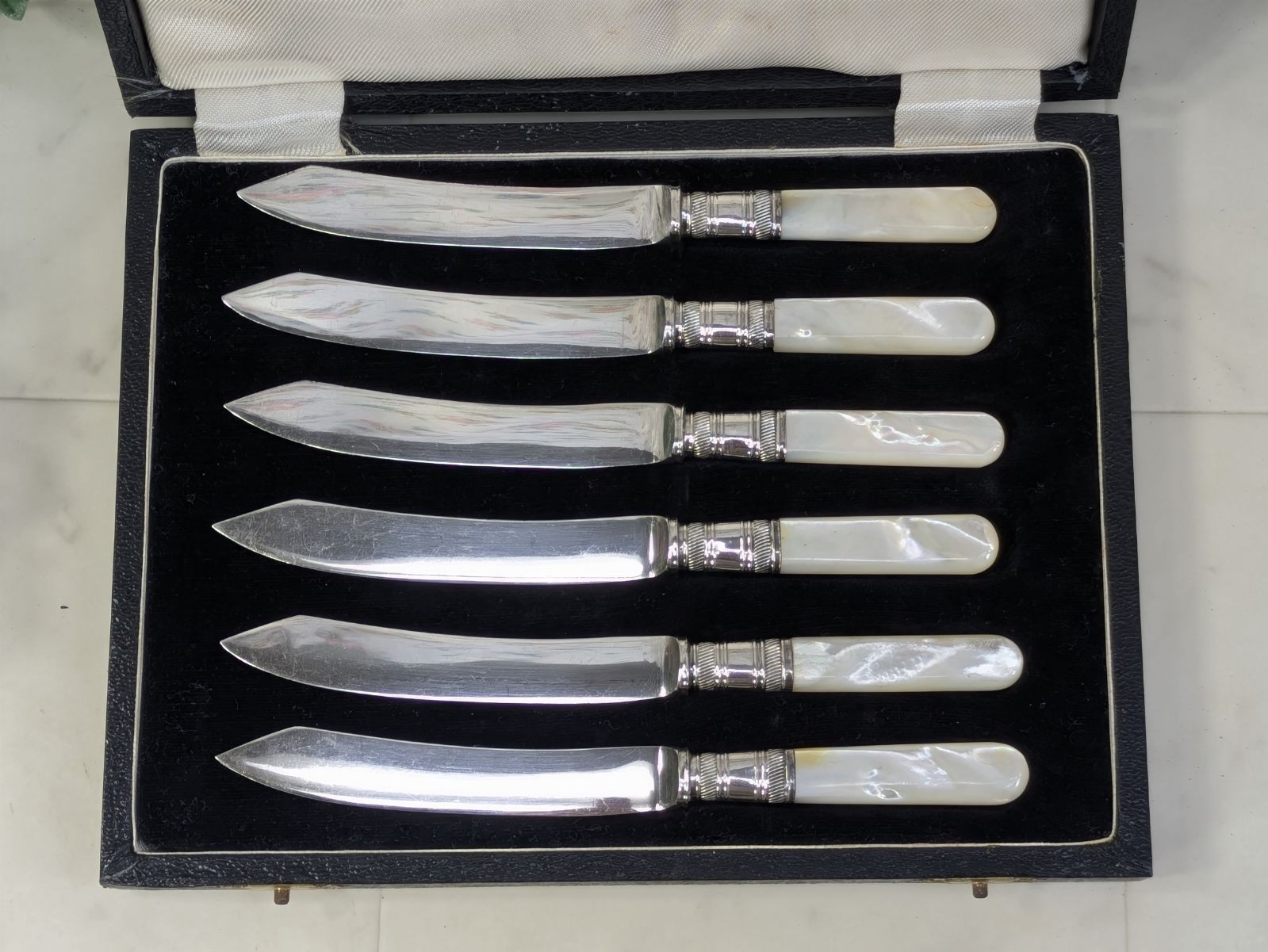 イギリス アンティーク シルバープレート デザートナイフ 6点 ケース入り