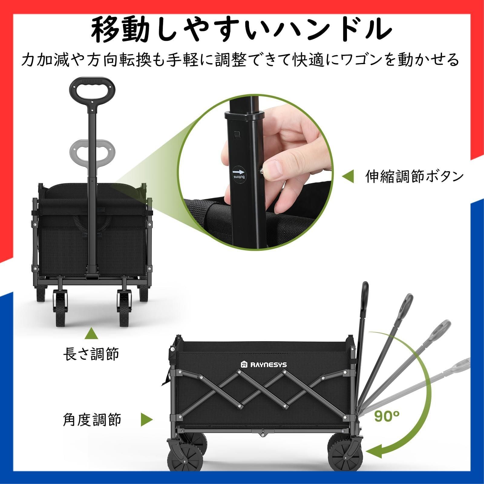 Raynesys キャリーワゴン 【2025新登場】【後部展開可 長物対応】 ミニ 超軽量5.7kg 高耐荷重100kg 容量65L-90L キャンプカート アウトドアワゴン 折り畳み式 持ち運び便利 コンパクト 自立収納 静音 多地形対応 キャンプ/砂浜/釣り/引越し/買い物/ゴミ出し