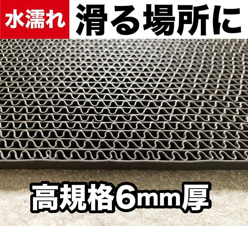 【3】歩行のための超厚: ホームセンターでよく売っている滑り止めマットの厚さは1.5mm~3mm程度。 スタッドレスマットは6mmの超厚仕様なので、踏まれることでシワになることはありません。
