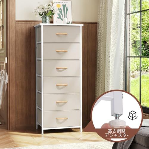 Crestlive Products チェスト タンス 6段 布製引き出し 収納 衣類 洋服収納 幅45×奥行30×高さ117㎝(ベージュ)