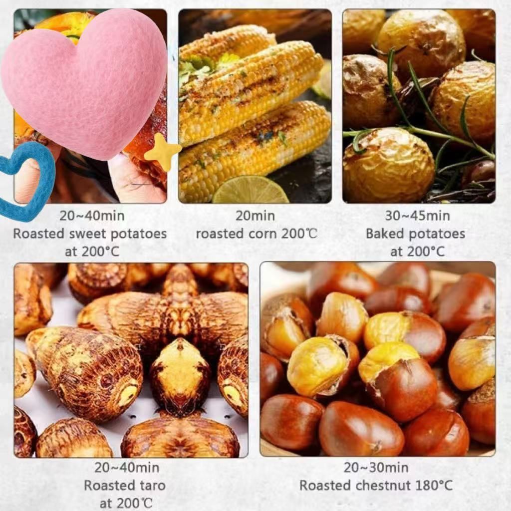 温度調整:機械調整ノブ、50~250℃の広範囲制御温度調整ノブ、熱はあなたによって制御されます。おいしいのは焼き芋だけではありません。考えられるものはすべて焼きます。