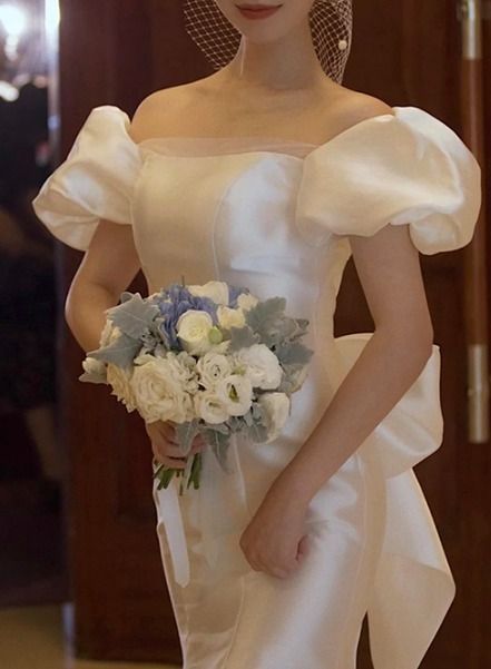 ロング ドレス ウェディング サテン リボン フィッシュテール