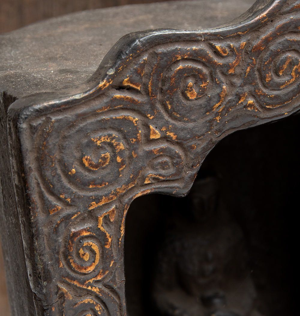 アミターバ - 阿弥陀如来が中に収められているチベット密教の厨子型をした仏像です。真ん中に一柱、横に2柱、合計3柱が彫られています。厨子とは、仏像・仏舎利・教典・位牌などを中に安置するための収納具のことを指します。