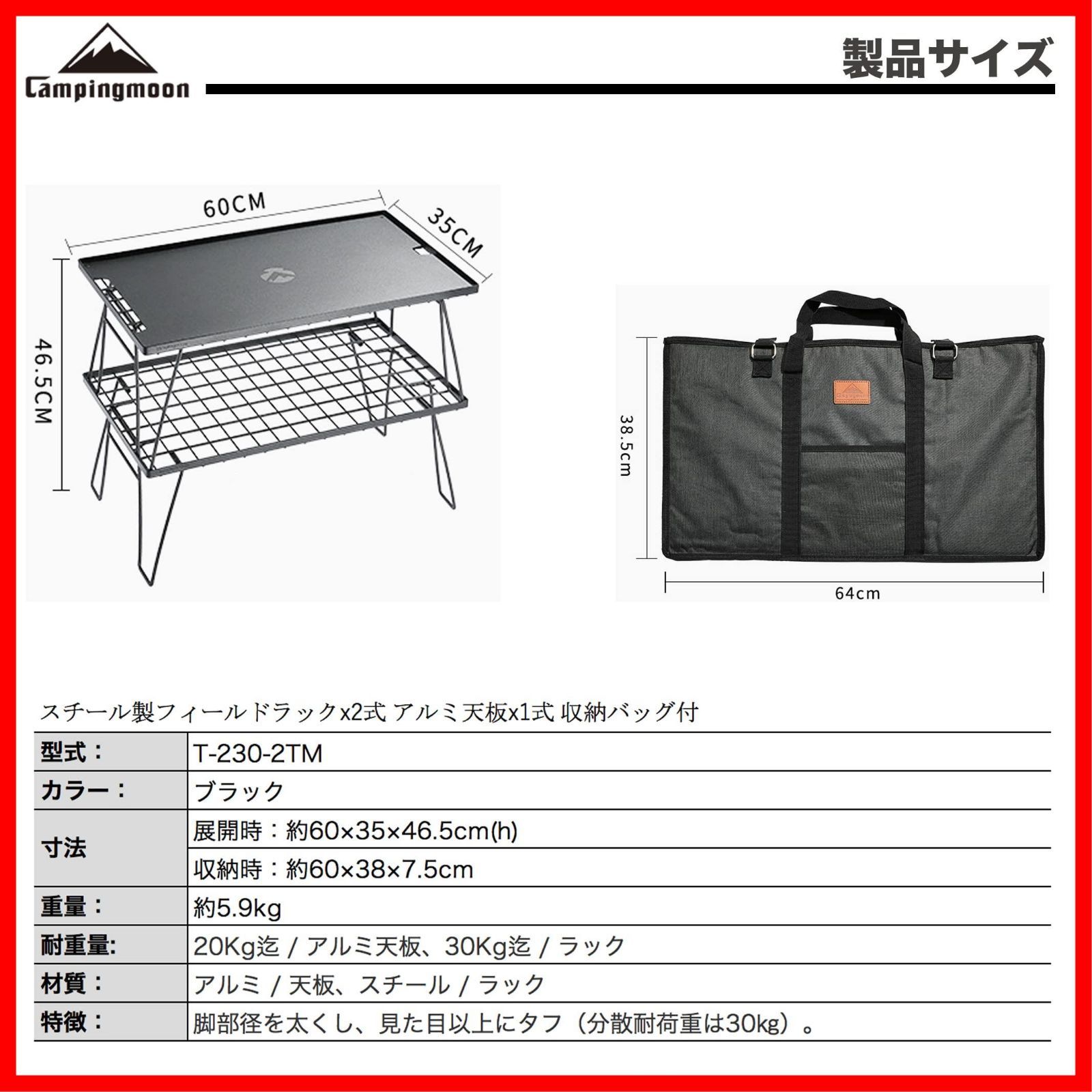 数量 2点 本体T 230 収納バック付き アルミ天板 黒メッキスチール製 折り畳みラック グラウンドラック セット フィールドラック MOON キャンピングムーン CAMPING