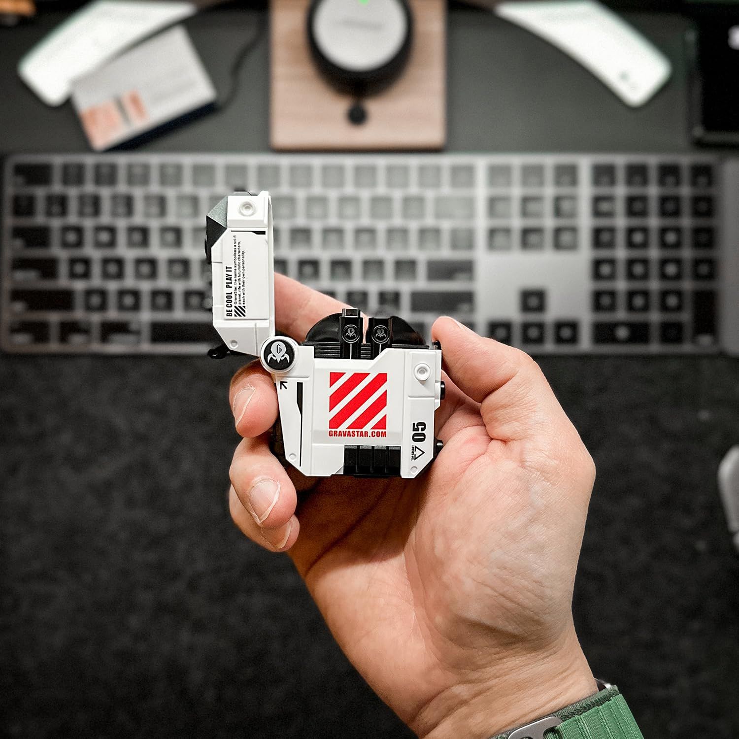 【目を引く独創的なデザイン】近未来感溢れる見た目の完全ワイヤレスイヤホン。機甲バトルのコンセプトをベースに、メカメカしい外観をデザイン。保護ケースと充電ケースの分離設計で、保護ケースが着せ替え可能。ボタンを押すと保護ケースのフタが開く。専用のネックレスチェーンを備えており、コーディネートのアクセサリーにも使える。市販の普通のイヤホンより、いっぱい設計感がある。