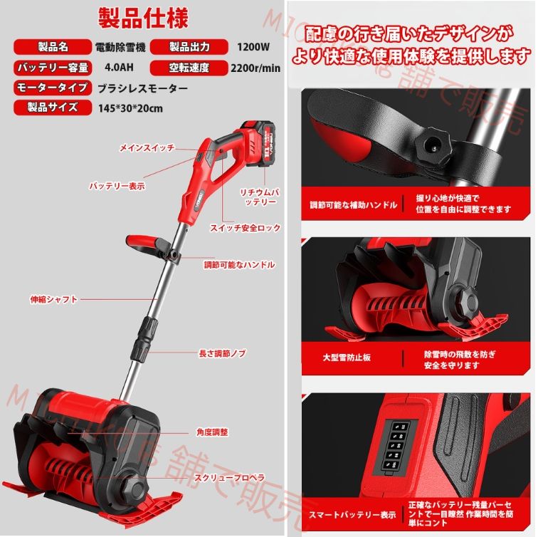 電動除雪機 家庭用 充電式 除雪機 素早い除雪 軽量 コードレス充電式除雪機 4 0 Ah大容量バッテリー 安全スイッチ 除雪用具 さまざまな路面 折りたたみ式除雪機 保管が簡単 除雪機ヘッド幅28 cm 高さは17 8