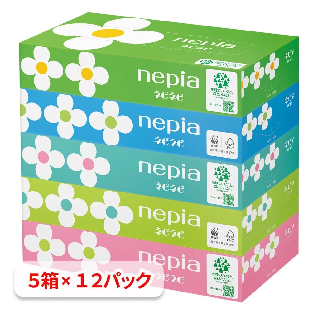 ネピア ネピネピ ティシュ 300枚(150組)×60箱(5箱×12パック)【ケース品】