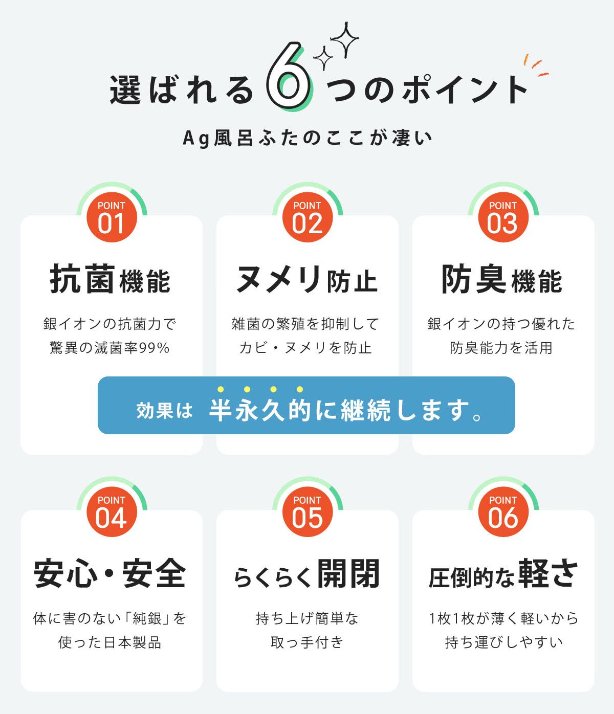 ●イオン配合で衛生的な組み合わせ式風呂ふたです。