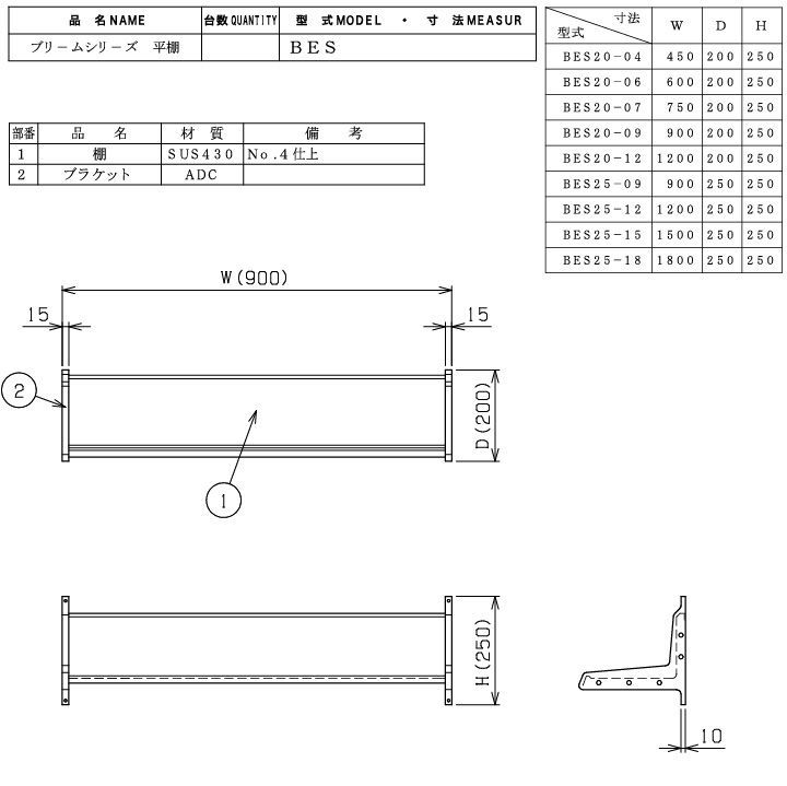 マルゼン 平棚 BES 20 09 幅900 奥行200 高さ250 mm 製 厨房機器 ラック 板金 収納