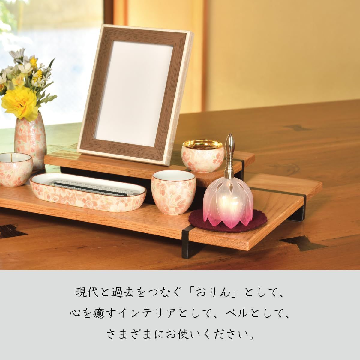 手で持って鳴らす、おしゃれなおりんです。まるで蓮の花を思わせる、従来のりんとは一線を画すデザインが人気です。仏具として、お仏壇でのご使用はもちろん、リビングのインテリアやベルとしてもご使用いただけます。