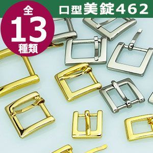 クラフト金具卸では主にカン類にピン(足)が付いたピンバックルを中心にお取り扱いしています。ピンバックルの特徴は、ベルト本体にピン(足)を通すための穴が必要です。穴は小さいものならそのまま、大きめの穴ならハトメなどで補強する必要があります。同じ平紐の調節金具である送り金具との違いは、ピンが有るものが美錠です。