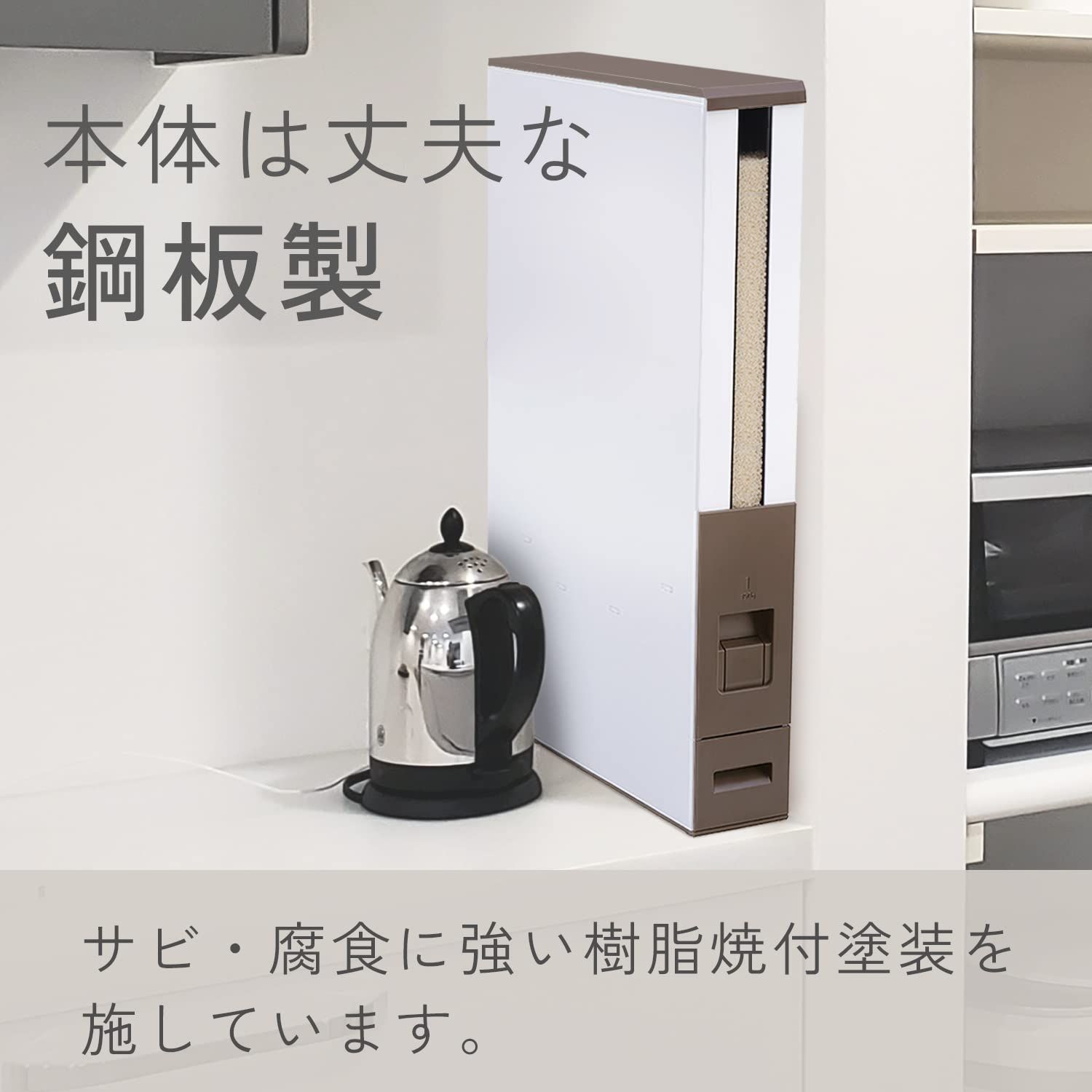 【スキマにピッタリ】キッチンのわずかな場所に置ける小型計量米びつです。幅わずか10cmで超スリム!台所・カウンターに置いても邪魔になりません。窓が透明になっているので米の残量が一目でわかります。