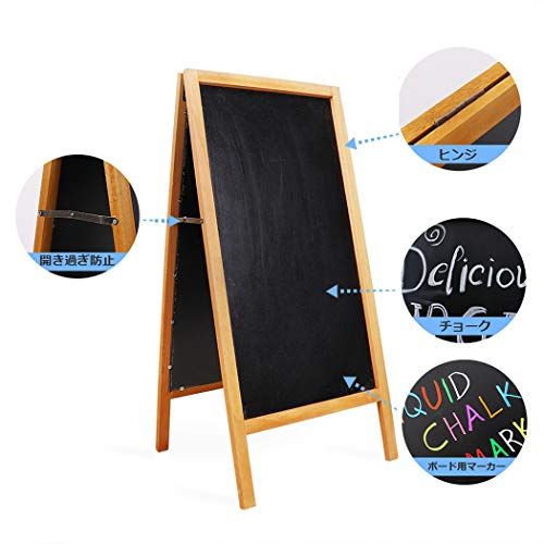 A型 看板 両面 スタンドボード ブラックボード ウエルカムボード 木目フレーム 幅45 x高さ95 cm 木製 立て看板 磁石 チョーク マーカー 対応 学校 イベント 店頭 カフェ サロン 開店 メニューボード お店 宣伝p 9258458 e