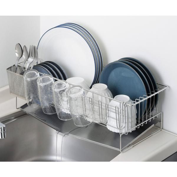 水切りラック 大容量 シンク上 スリム 水切りかご コンパクト 水切りカゴ 水切り ステンレス 箸立て 箸たて 金属製 トレイ フック カトラリー入れ toh 346376