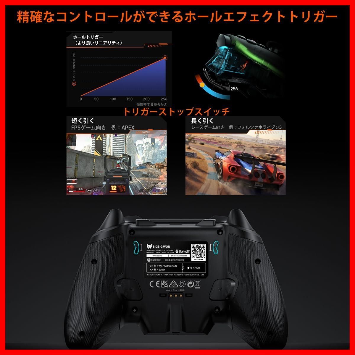 ワイヤレスコントローラー、BIGBIG WON Rainbow 2 Pro Combo PCコントローラー 6軸ジャイロセンサー、ホール効果トリガー、ALPSジョイスティック、3.5mmオーディオ、ゲームパッド使用 PC Windows/Android/iOS/Switch Proコントローラー 充電ドック付き