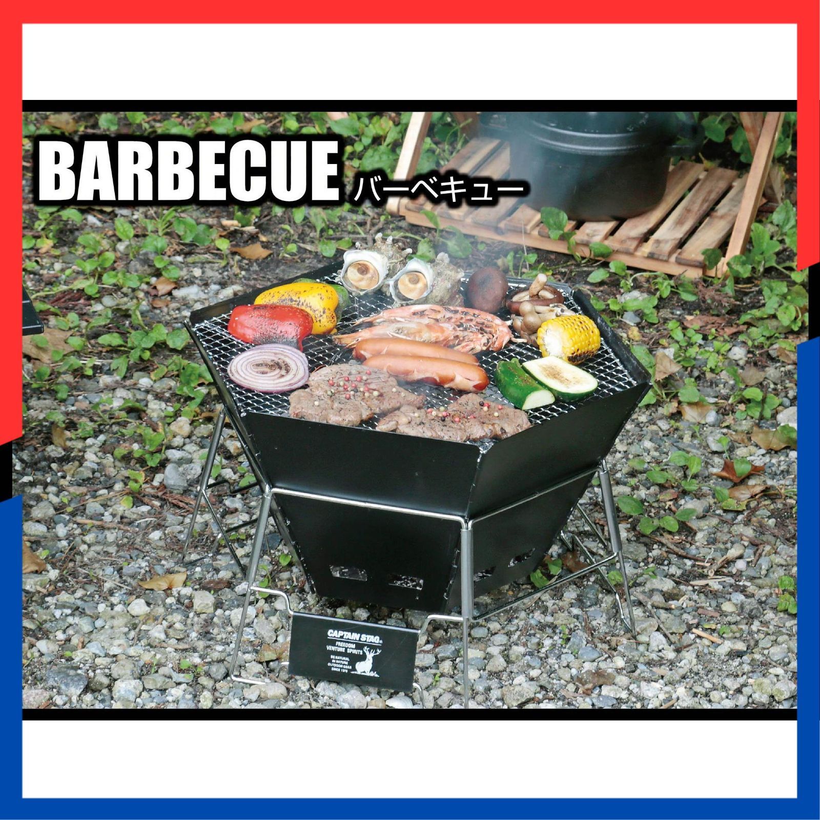 キャプテンスタッグ(CAPTAIN STAG) バーベキューコンロ 焚火台 ダッチオーブン 1台3役 ヘキサステンレス ファイアグリル バッグ付 CSブラックラベル UG-50
