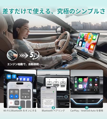 【ナビ・音楽・通話などフル機能対応】ナビゲーション、音楽再生、Siriアシスタント、電話、メッセージなどをサポートします。CarPlayやAndroid Autoアプリをフルに楽しみながら、車両のコントロールを維持できます。Googleマップで最新のナビゲーションを使用したり、Spotifyで音楽を再生したり、Bluetooth通話が可能です。さらに、音声コントロール(例:『駅にナビ!』や『音量を下げて!』)にも対応しています。毎回車に乗るたびにスマートフォンを接続する必要はありません。スマートフォンとのシームレスな統合で、安全かつ快適な運転操作が実現できます。