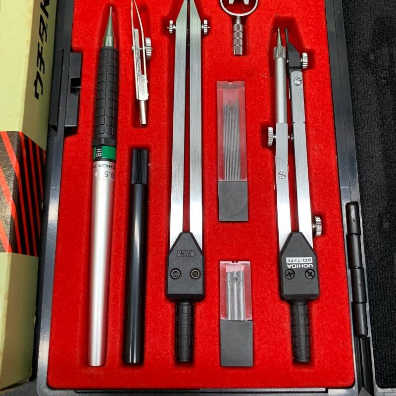 C 409 ウチダ UCHIDA 製図用品一式 KD型製図器 三角定規 電気製図 自在曲線定規 セット