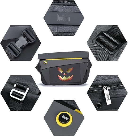 【ピクセルアートデザイン】Divoom PixooSling Bag-Vは16*16ピクセルのディスプレイを搭載しています。 Divoom APPを使用して、楽しいピクセルアートを作成してショルダーバッグに表示できます。 ピクセルアートをファッショントレンドにします。