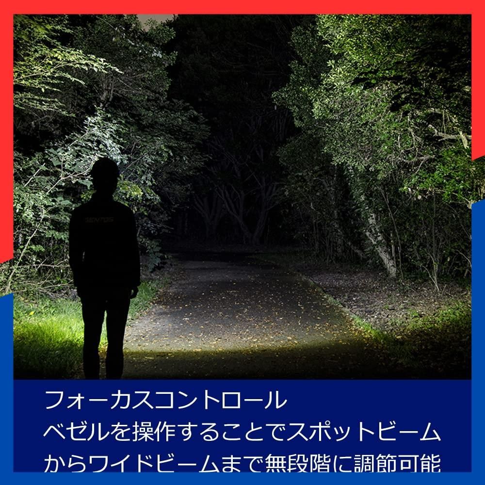 明るさ:High/650ルーメン、Mid/300ルーメン、Eco/20ルーメン、使用電池:専用充電池