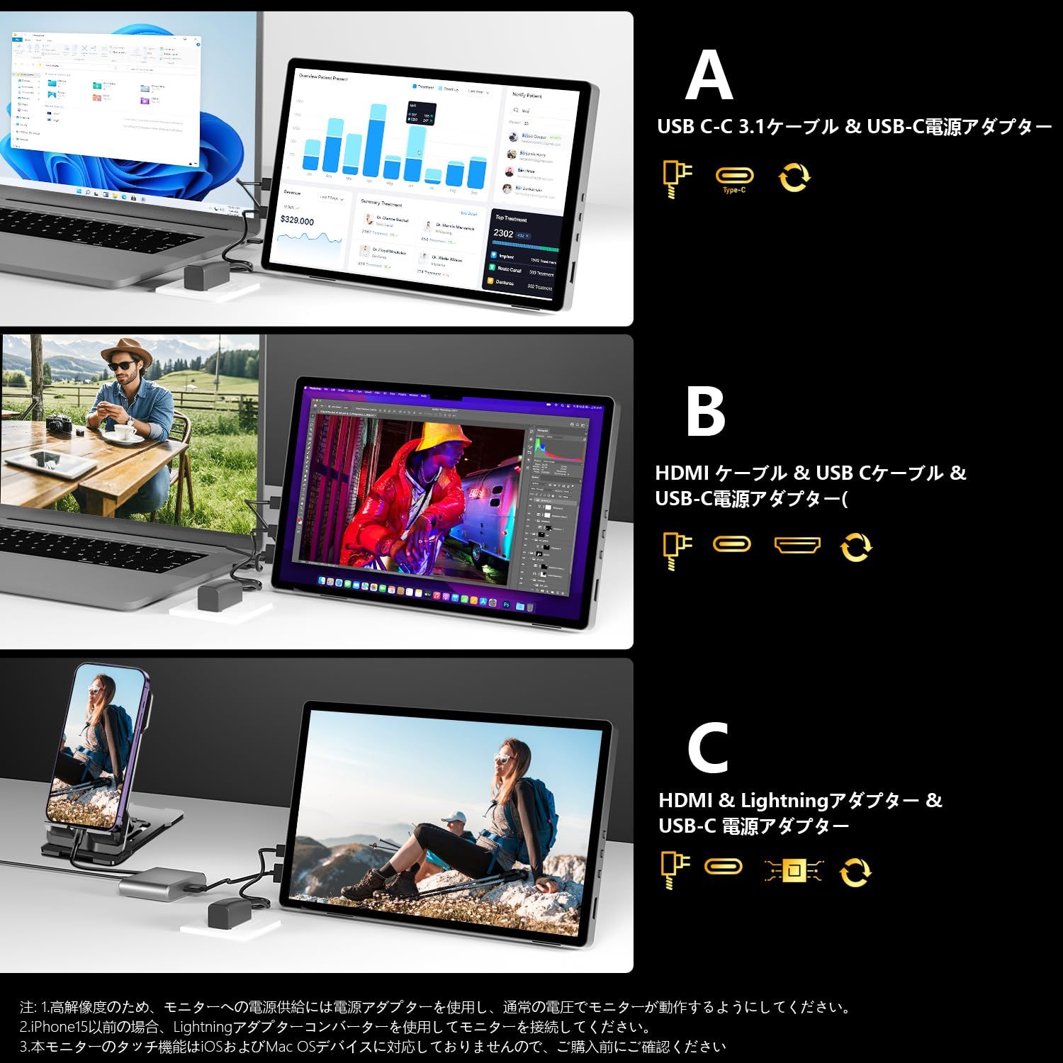 【2Kモバイルモニター|10点タッチパネルでの直感的操作体験】このラップトップ用モバイルタッチパネルモニターは、10点マルチタッチ機能を搭載。スイッチング、スワイプ、ズーム操作が精密かつ滑らかに可能で、2Kモバイルモニターならではの高精細画面と連動。ゲームプレイの敏捷性やデザイン作業の微調整、学習コンテンツの拡大表示など、モバイルモニターとしての高い応答性能で、生産性を劇的に向上させます。