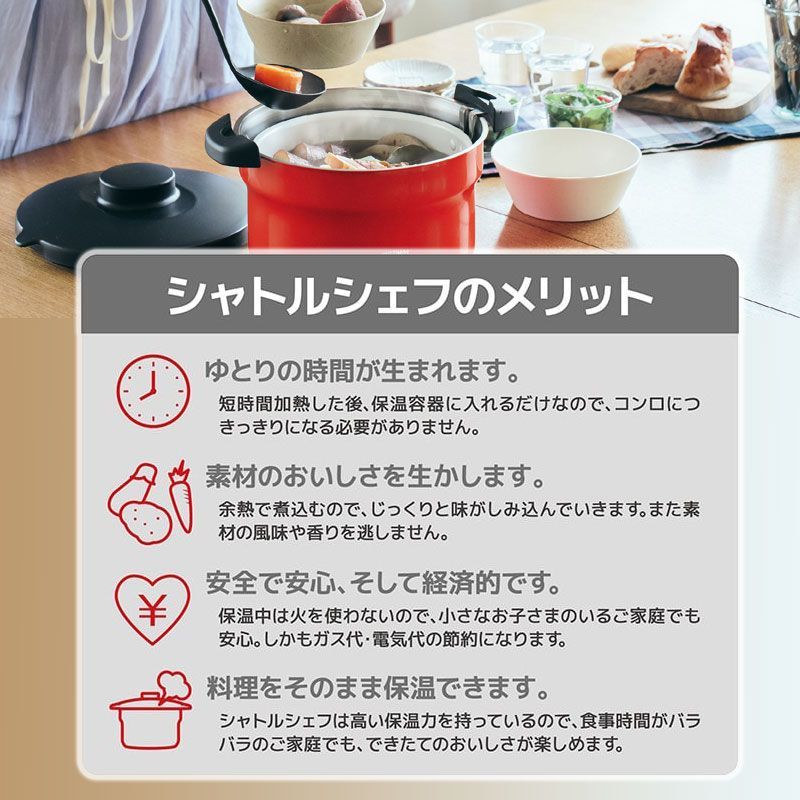 ご用途など 結婚祝い お祝い 御祝 内祝 内祝い 父の日 母の日 敬老の日 お祝い返し ウェディングギフト ブライダルギフト バレンタインデー ホワイトデー 贈り物 引き出物 引出物 結婚 出産 命名 ギフト セット 贈答品 記念日 販促物 ノベルティ 誕生日 クリスマス お正月 新生活 記念品 お返し お礼 御礼 ごあいさつ ご挨拶 御挨拶 プレゼント 就職祝い 新築祝い 引越し祝い 開店祝い 二次会 披露宴 結婚式 新築 上棟 引っ越し 引越し祝い 開店 退職 金婚式 銀婚式 ダイヤモンド婚式 結婚記念日 木婚式 定年 景品 賞品 粗品 のし メッセージカード ラッピング キッチン雑貨 THERMOS サーモス シャトルシェフ ShuttleChef 真空保温調理器 KBJ-4502 アーバンレッド UR ネイビー NVY セラプロテクトコート 鍋 お鍋 万能鍋 両手鍋 保温鍋 保温調理鍋 保温調理 真空保温調理鍋 保温 時短 時短調理 余熱調理 時短 余熱調理 省エネ ガス火 ガスコンロ IH 直火 ガス火・IH両方対応 コンパクト 蓋 ふた ガラス蓋 みよし漆器本舗 みよし漆器 三好漆器
