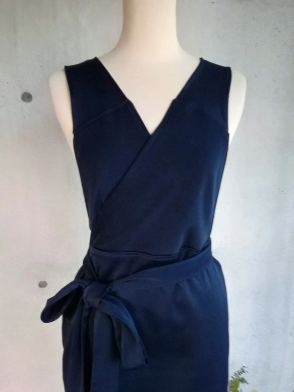 4 L 6 ストレッチスエード ネイビー 茶道お稽古用エプロン羽織って着るウエストリボン127100 35 2