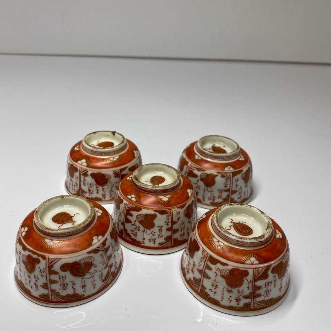 明治時代 九谷焼 赤絵 煎茶碗5客 共箱 トヒチ 東さ5 0716