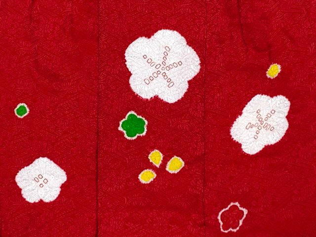 七五三 三歳 女の子 被布セット 正絹被布コート 草履 巾着 足袋 4点コーデセット 赤 梅 THF 893 4 set 01