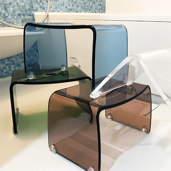 風呂椅子 風呂桶 3点セット アクリル おしゃれ バスチェア 高さ 20 cm 25 座高 バスボウル 洗面器 感 厚み クリア 透明 スツール 湯桶 おけ シンプル favor fmk 006