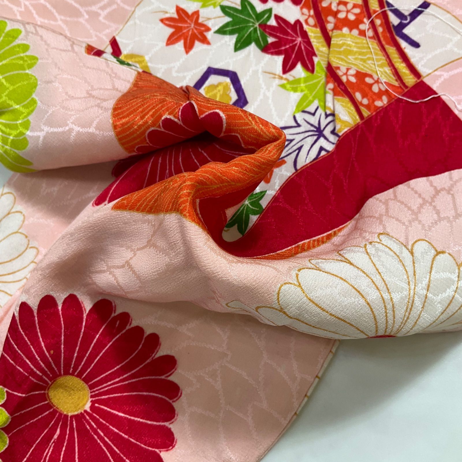 kimono one 7歳くらい用 アンティーク子供着物 綸子正絹 七五三 裄55 5肩丈144 七五三お詣り女の子着物こどものひお正月卒業式十三詣り G 312
